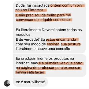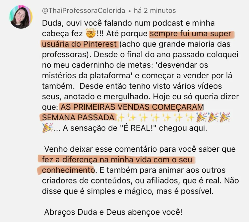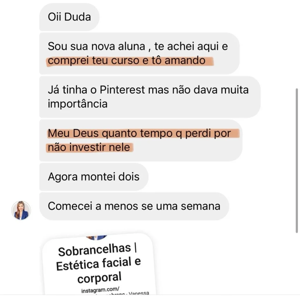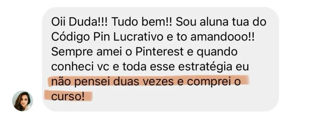 Essa jornada a levou a se tornar uma das principais referências no uso desta plataforma, sendo reconhecida pela própria plataforma como a Rainha do Pinterest. Em um dia qualquer, enquanto navegava pelo Pinterest, Duda realizou sua primeira compra através da plataforma e rapidamente viu o potencial lucrativo lá dentro.